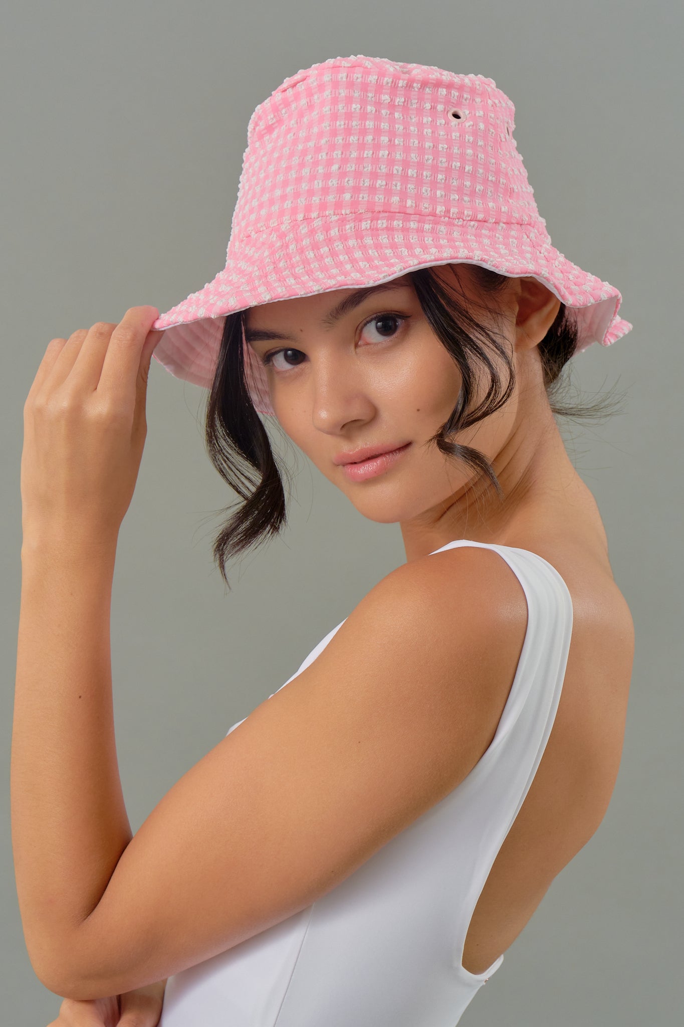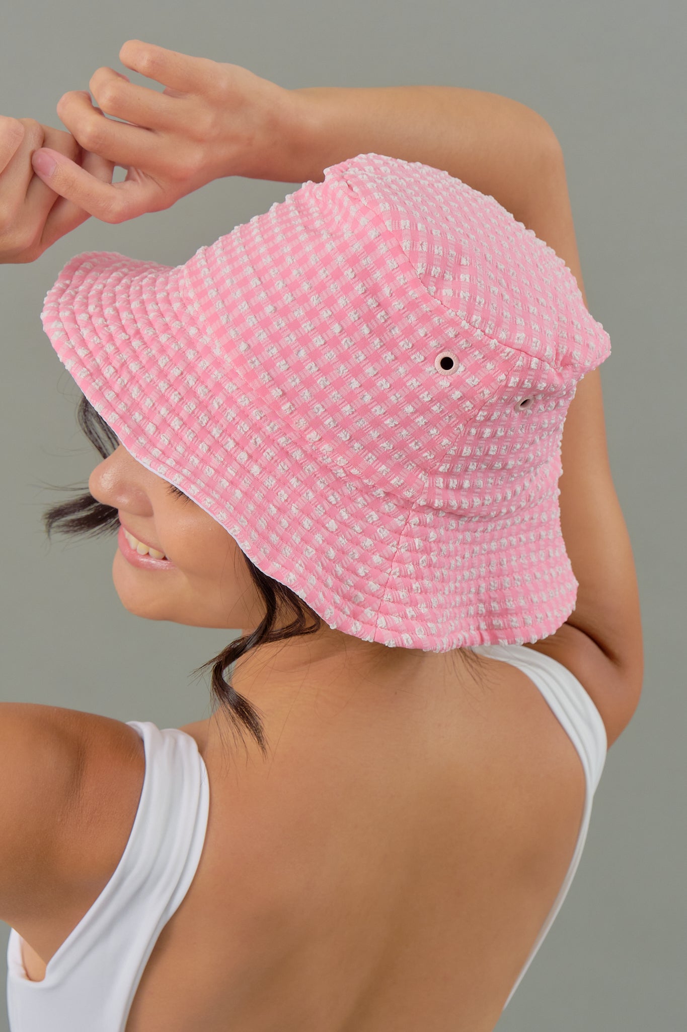 Adult Bucket Hat in Pink Tourmaline Gingham