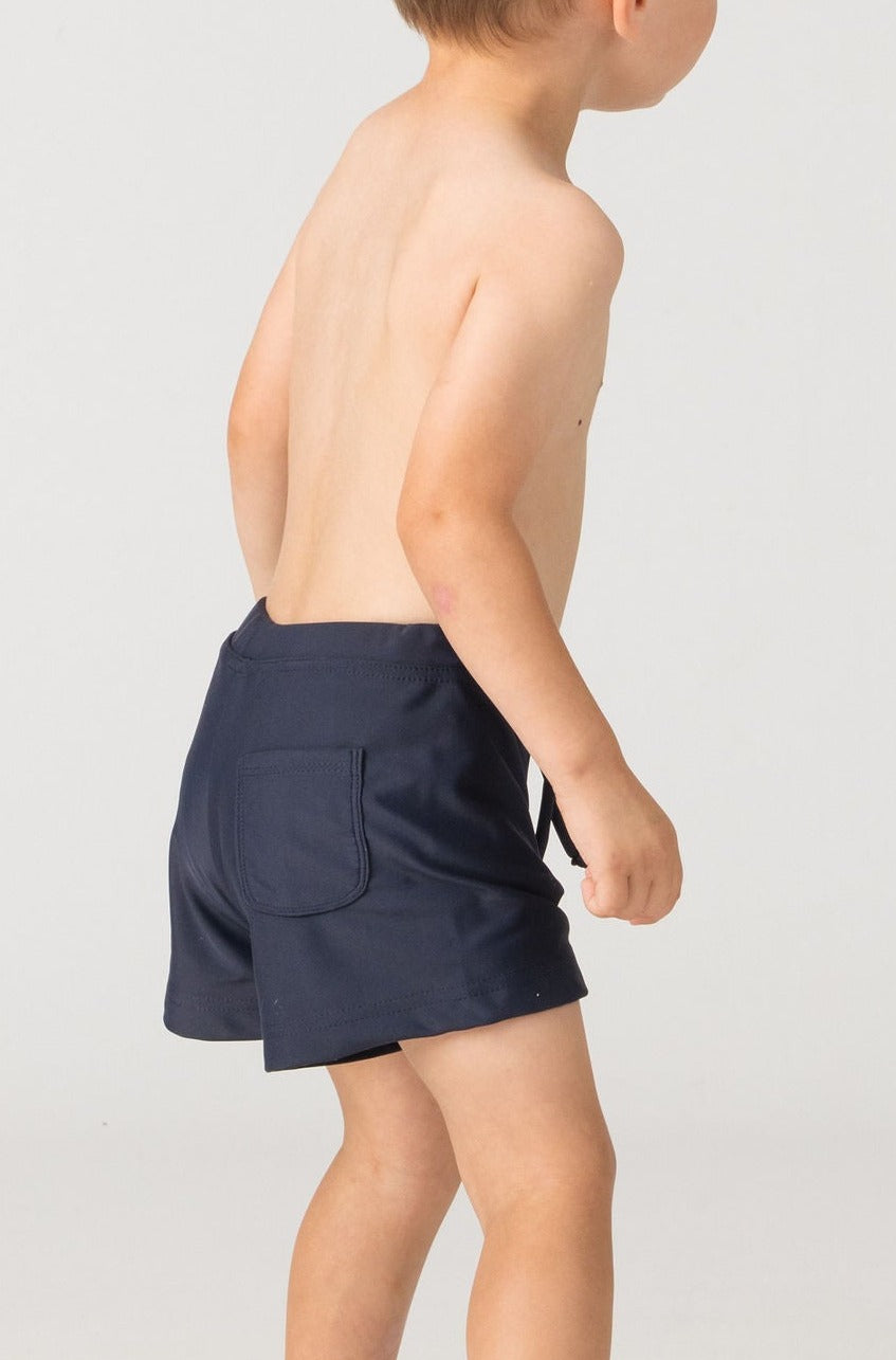 Our signature baby swim trunks are made from our signature double layered super soft fabric. They are designed to be worn with or without a swim nappy. Featuring a back pocket, stylish fit and drawstring waist, these swim trunks are sure to be a favourite.
