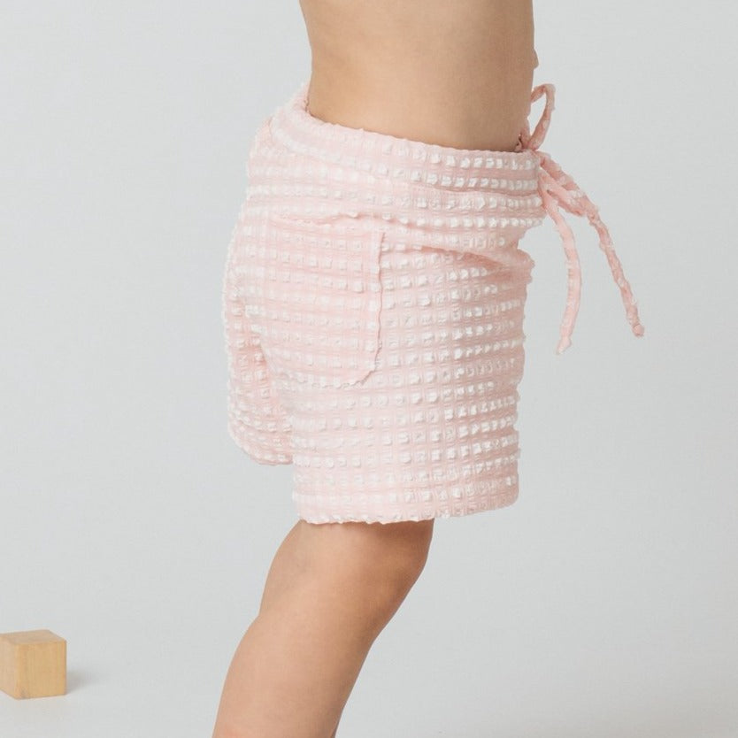 Our signature baby swim trunks are made from our signature double layered super soft fabric. They are designed to be worn with or without a swim nappy. Featuring a back pocket, stylish fit and drawstring waist, these swim trunks are sure to be a favourite.