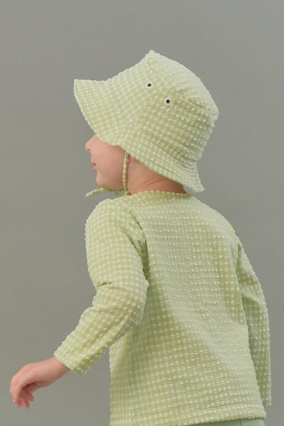 Kids Bucket Hat in Jade Gingham