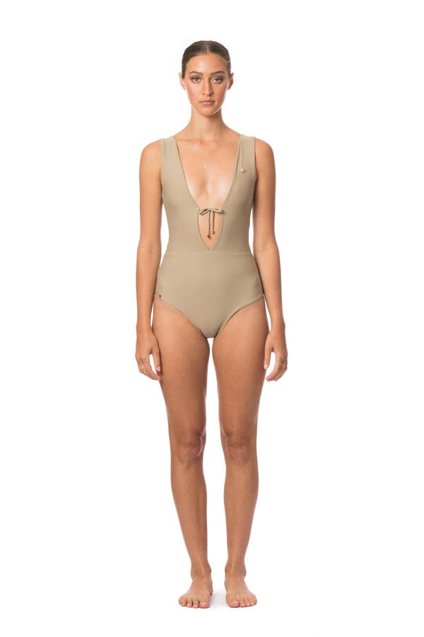 Luxurious super soft body contouring double fabric, rose gold hardware, and a daring deep V cut make this swimsuit as chic as it gets! A pretty little bow to tie up at the front keeps you feeling confident. This swimsuit can also be worn as a bodysuit. Features our signature rose quartz.