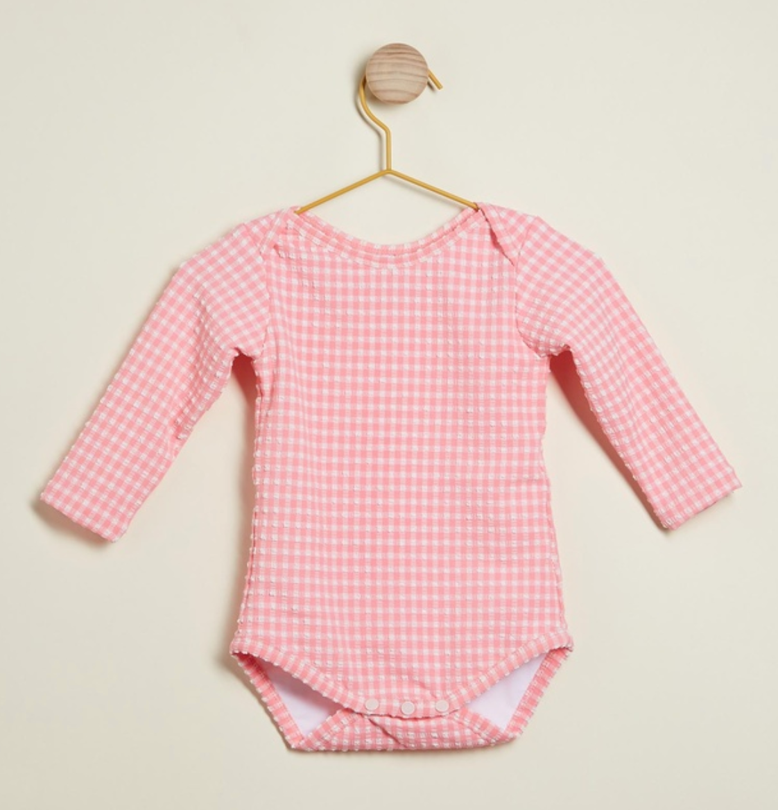 A baby swimwear breakthrough! Our baby swim bodysuit is ideal for parents looking for more sun protection in a practical and stylish one piece. Featuring full length sleeves, an easy to slip over the head design and signature press studs for quick and easy nappy changes.