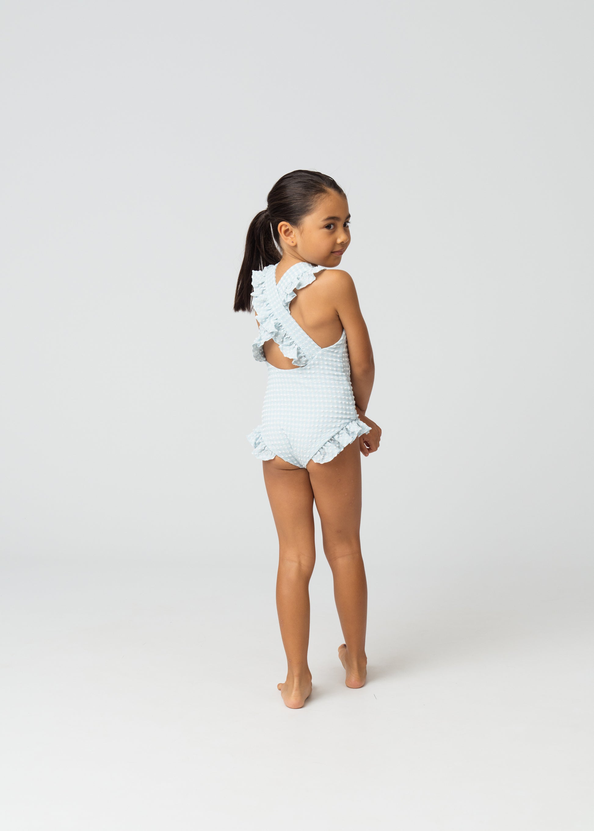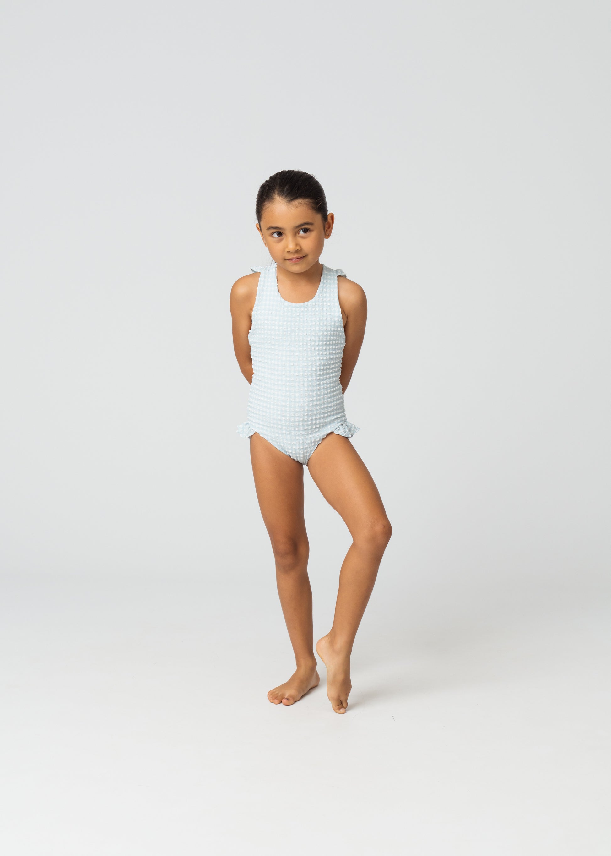Our pretty, frilly, cross back swimsuit for girls is made of our signature double layered super soft fabric. A timeless classic with a superior fit and luxurious details.