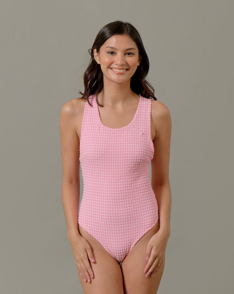 The women’s version of our ever popular girls style with the same name! Ideal for matching with your mini. Whimsical and feminine ruffled cross back style with a high leg cut to give you legs for days! Fully lined with our signature silky fabric and featuring our rose gold hardware and rose quartz crystal.